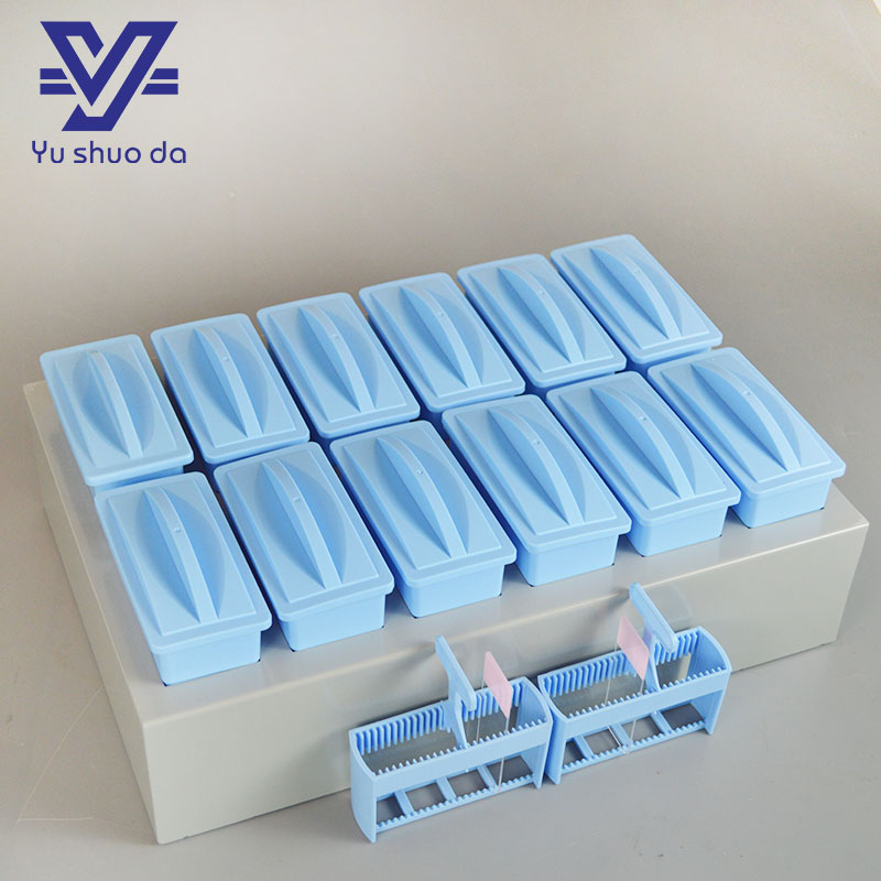 Yushuoda ataining jar with lids can be used for routine staining, immunohistochemistry, and tissue processing.Experimental operations such as staining, immunohistochemistry and in situ hybridization can be performed on samples on 25 slides at the same time.